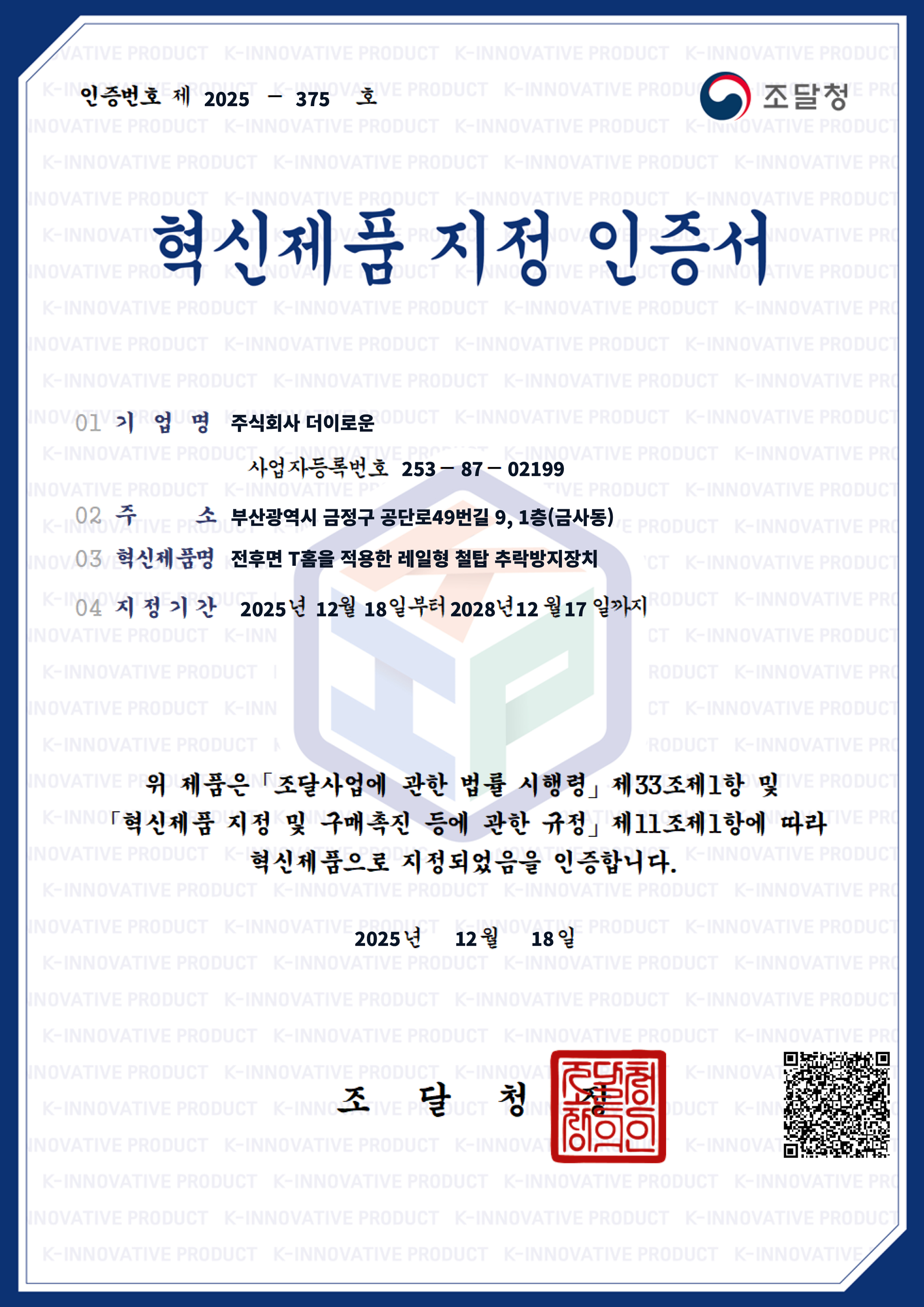 더이로운은 건설 및 산업 현장의 안전을 최우선으로 생각합니다. 수십 년간 축적된 기술력과 혁신적인 아이디어를 바탕으로 총 146건에 달하는 지적재산권을 보유하고 있습니다.
